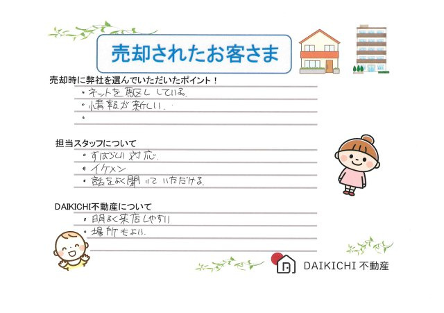 この度は多くの不動産会社と比較検討された中で弊社をご利用いただきまして誠にありがとうございました。