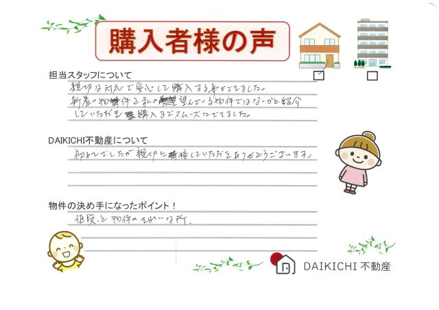 W様にご満足いただける物件をご紹介することができ担当として嬉しく思います。