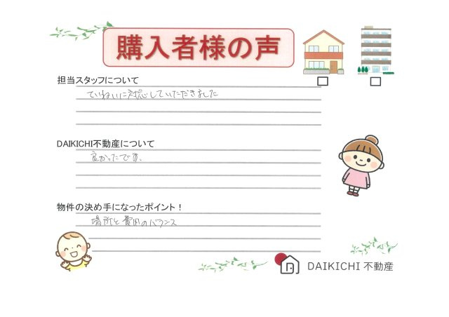 数ある不動産会社の中からDAIKICHI不動産をご利用いただきありがとうございました。