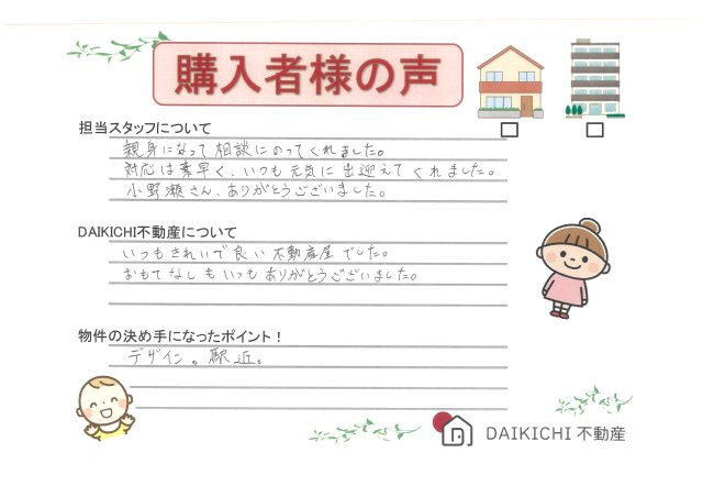 埼玉県北部の戸建て|DAIKICHI不動産(ダイキチ不動産) > お客様の声一覧 > 【購入】K.K様