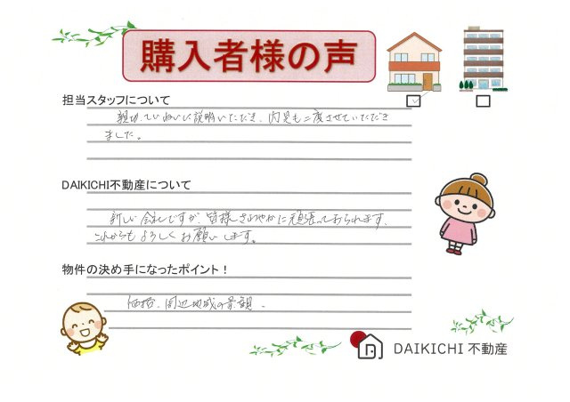 数ある不動産会社の中から弊社DAIKICHI不動産のお選びいただきましてありがとうございました。